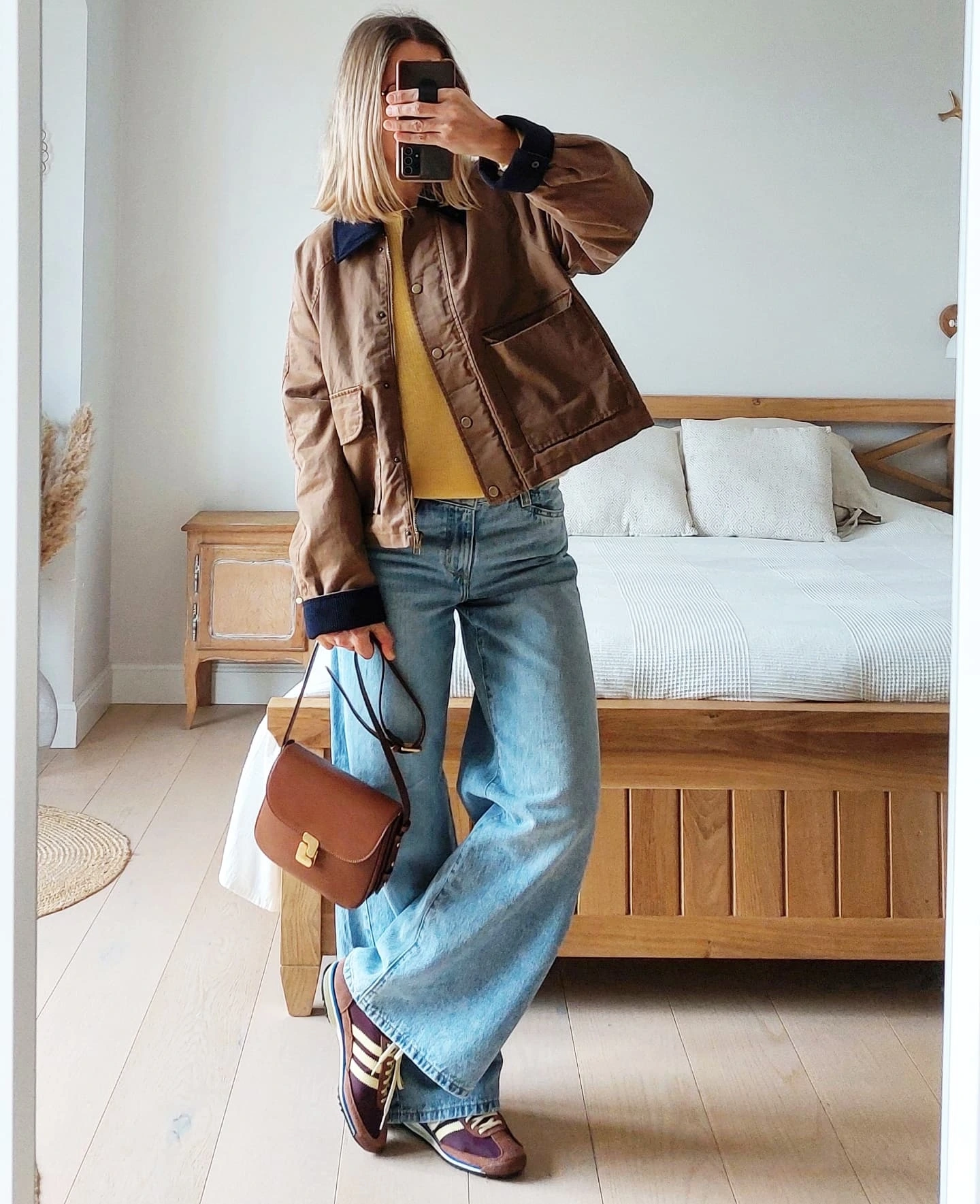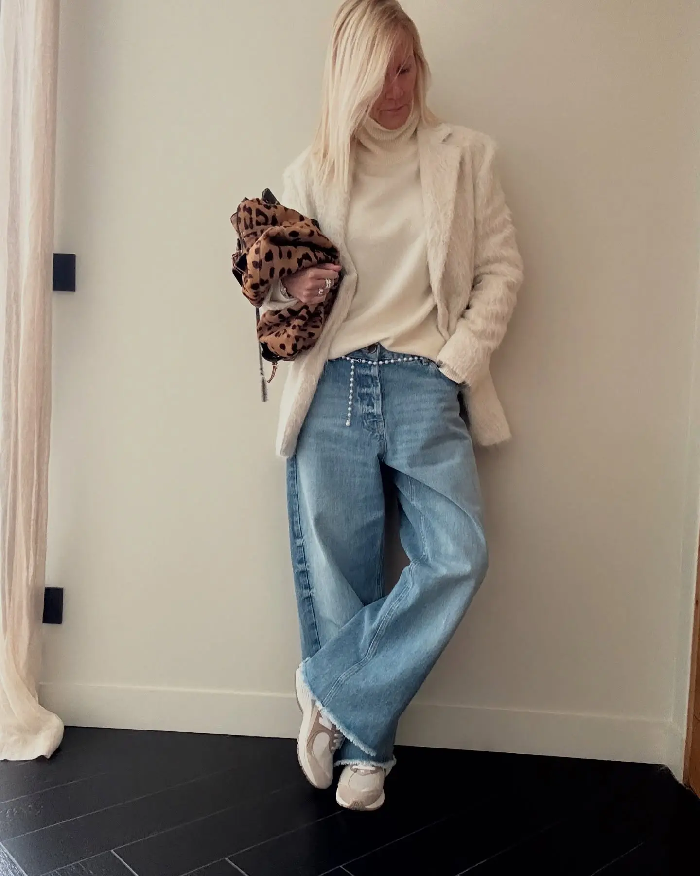 My Take: I love this combination for travel days or running multiple errands. The sporty element keeps it comfortable and practical, while the wide leg jeans prevent it from looking too gym-focused. It’s that perfect intersection of athleisure and actual style that makes you feel put-together even on your busiest days.