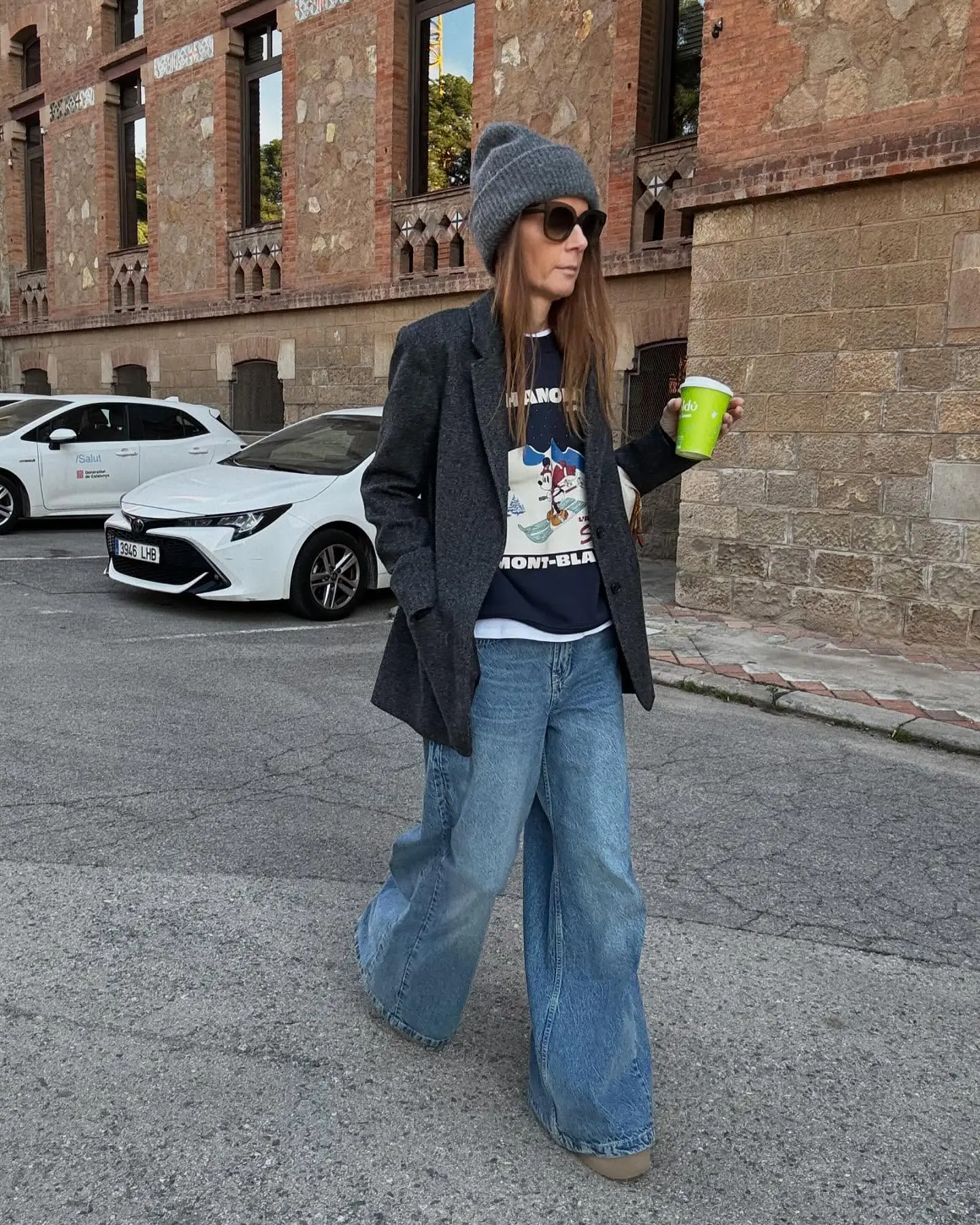 Real Talk: This is what I reach for on lazy Saturdays when I want to feel comfortable but not like I’ve completely given up. The voluminous jeans balance the oversized sweater beautifully—it’s all about playing with proportions. Just remember to show some ankle or add heeled boots to prevent the look from feeling too bulky.