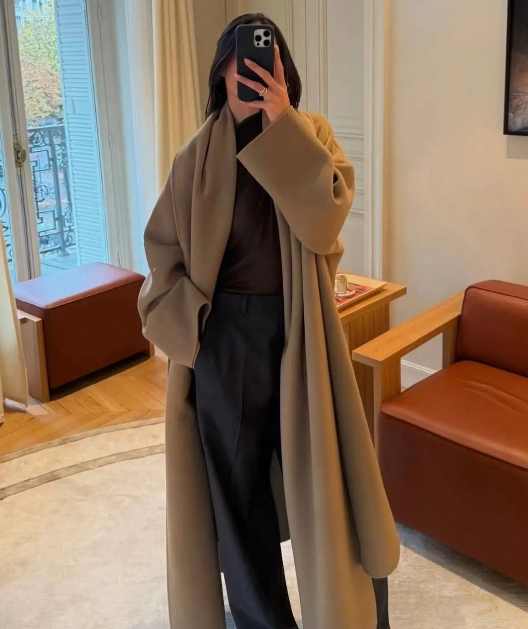 The turtleneck is winter’s most versatile interview piece! Choose one in a neutral color (black, navy, cream, or burgundy) and pair it with wide-leg trousers for a modern, confident silhouette. The genius here? A long cardigan adds an extra layer of warmth and creates beautiful vertical lines.