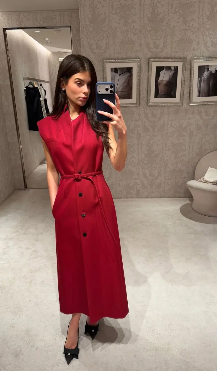 If you’re ready to make a statement (in the most professional way possible), this red dress is your answer. The rich red color commands attention while remaining appropriate for the workplace. The sleeveless design with a subtle collar neckline creates a polished look, and the self-belt emphasizes the waist beautifully.