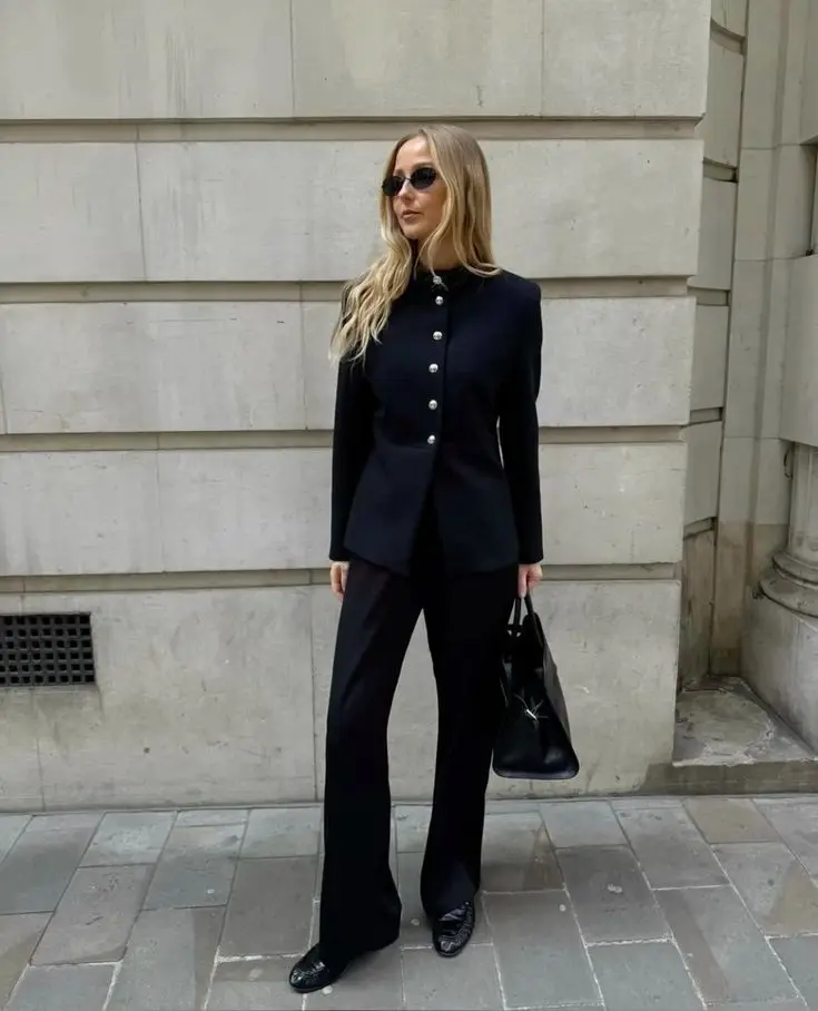 The all-black ensemble (blazer and pants) is the ultimate power uniform. Simple, sleek, and unquestionably authoritative, this look never fails when you need to command respect in a room.