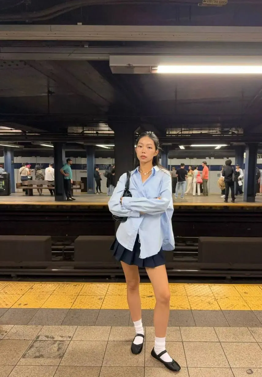 Styling tip: The oversized shirt-and-mini skirt combination is a Korean fashion staple that fashion insiders at Marie Claire have called one of the defining looks of Seoul street style. Your shirt should be genuinely oversized (not just loose), and the skirt should hit mid-thigh. The white socks with black shoes combo is very specifically Korean—it adds a youthful, almost school-uniform quality that’s central to the ulzzang aesthetic.