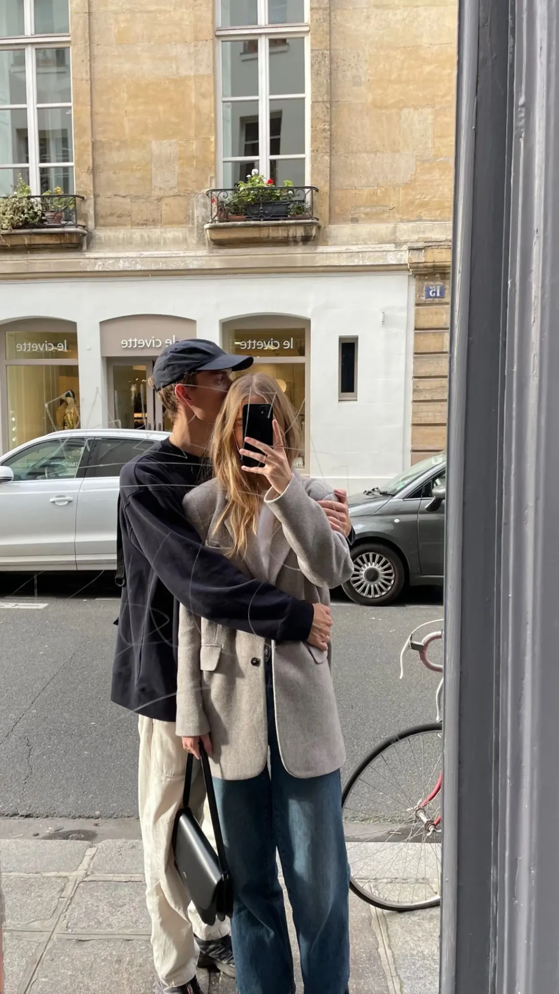 Styling Tips: Coordinating through era and aesthetic rather than color creates incredibly cohesive photos with personality. Both outfits channel vintage elegance. The shared brown tones (her boots and bag, his accessories) subtly connect the looks without being matchy. This approach works beautifully for couples who want their photos to tell a story or evoke a specific mood. When coordinating through aesthetic rather than color, ensure both outfits are from a similar style category—both vintage, both modern minimalist, both bohemian, etc. This creates visual harmony even with different colors. Props and setting matter tremendously with this approach—choose locations and contexts that support your chosen aesthetic. Urban European streets, vintage cars, or classic architecture enhance vintage-inspired coordination.